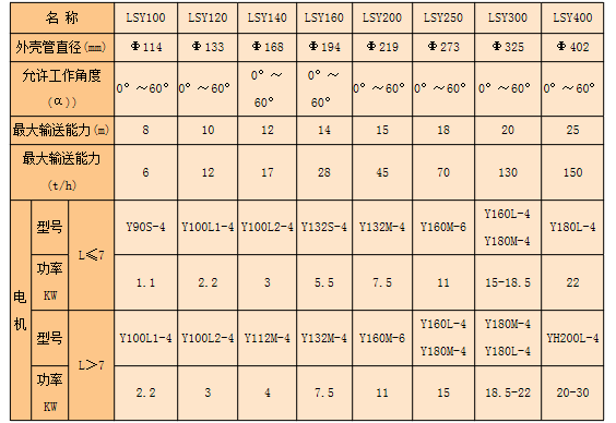 LSY螺旋输送机与其他输送设备相比较,具有结构简单、横截面尺寸小、密封性能好等特点,可以中间多点装料和卸料,操作安全方便以及制造成本低。设备缺点是机件磨损较为严重,输送量较皮带机低,消耗功率大以及物料在运输过程易被破碎。
