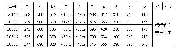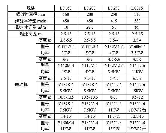 六、LC型垂直螺旋输送机规格及技术参数:
